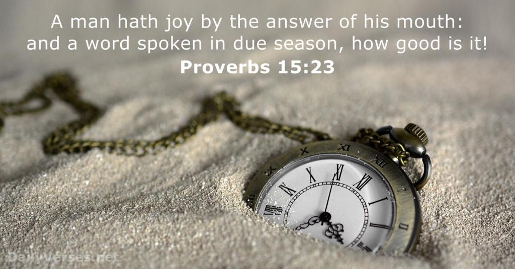 …Plans fail for lack of counsel, but with many advisers they succeed. A man takes joy in a fitting reply — and how good is a timely word! The path of life leads upward for the wise, that he may avoid going down to Sheol.… Proverbs 15:23