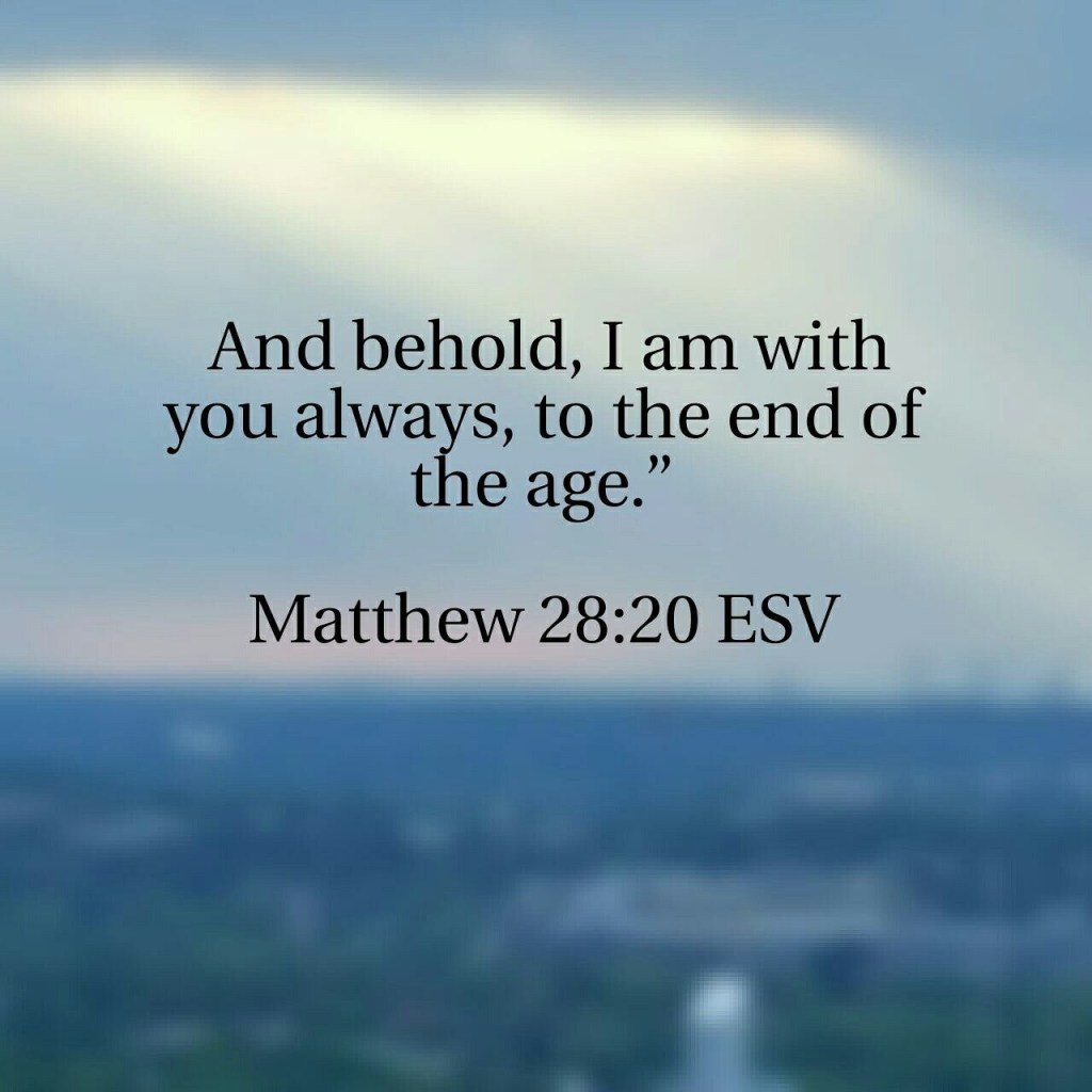 Before Jesus ascended into heaven, He instructed His disciples, “All authority in heaven and on earth has been given to me. Therefore go and make disciples of all nations, baptizing them in the name of the Father and of the Son and of the Holy Spirit, and teaching them to obey everything I have commanded you. And surely I am with you always, to the very end of the age” (Matthew 28:19–20). This promise that He would be with His disciples even to the end of the age still holds true for believers today. We are not yet to the end of the age.