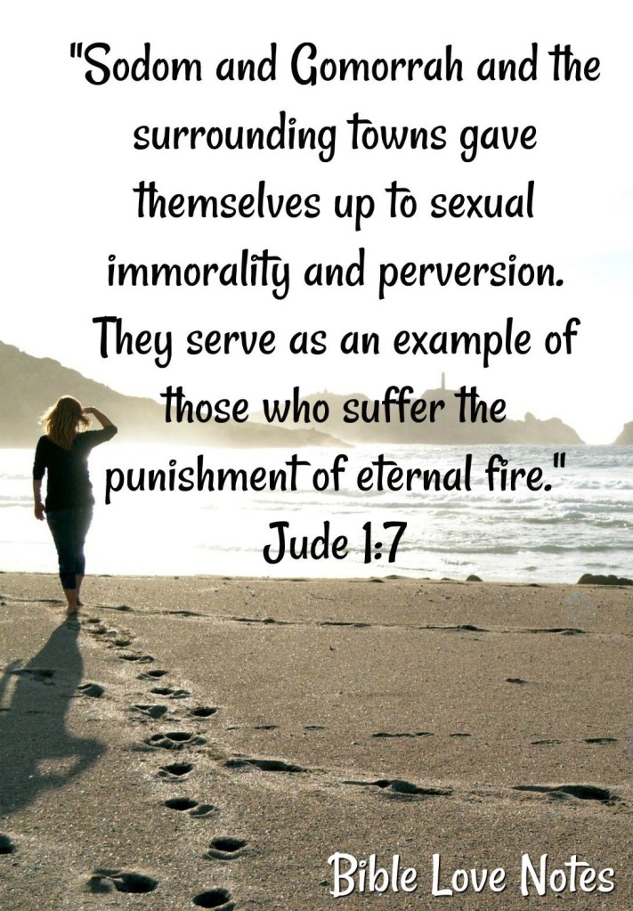 Jude 1:7 speaks of “Sodom and Gomorrah, and the cities about them in like manner, giving themselves over to fornication, and going after strange flesh” (KJV). In context, Jude is assuring his readers that God has punished sin in the past and, therefore, He will continue to do so in the future. Jude gives a list of incidents as evidence of God’s judgment, and one of the incidents that he cites is the case of Sodom and Gomorrah.